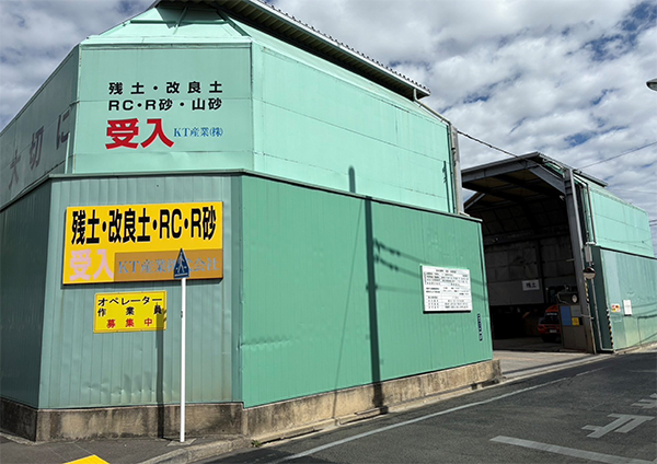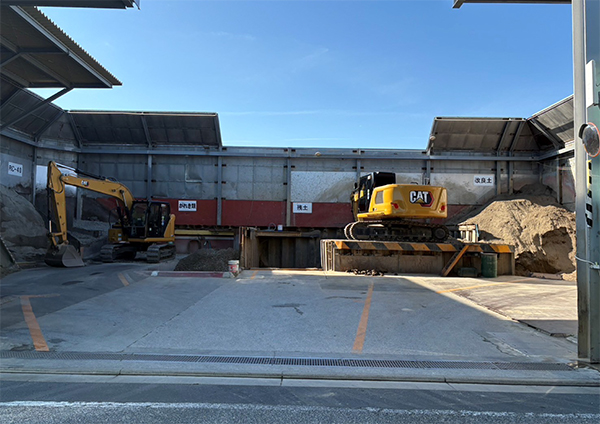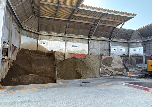 建設発生土及び骨材販売施設(約600平米=約180坪)。 資材ストックヤードを併設。 廃材、残土、骨材を受入販売することで、ワンストップでご利用いただけます。