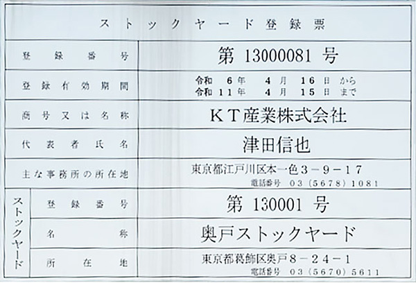 行徳ストックヤード登録票